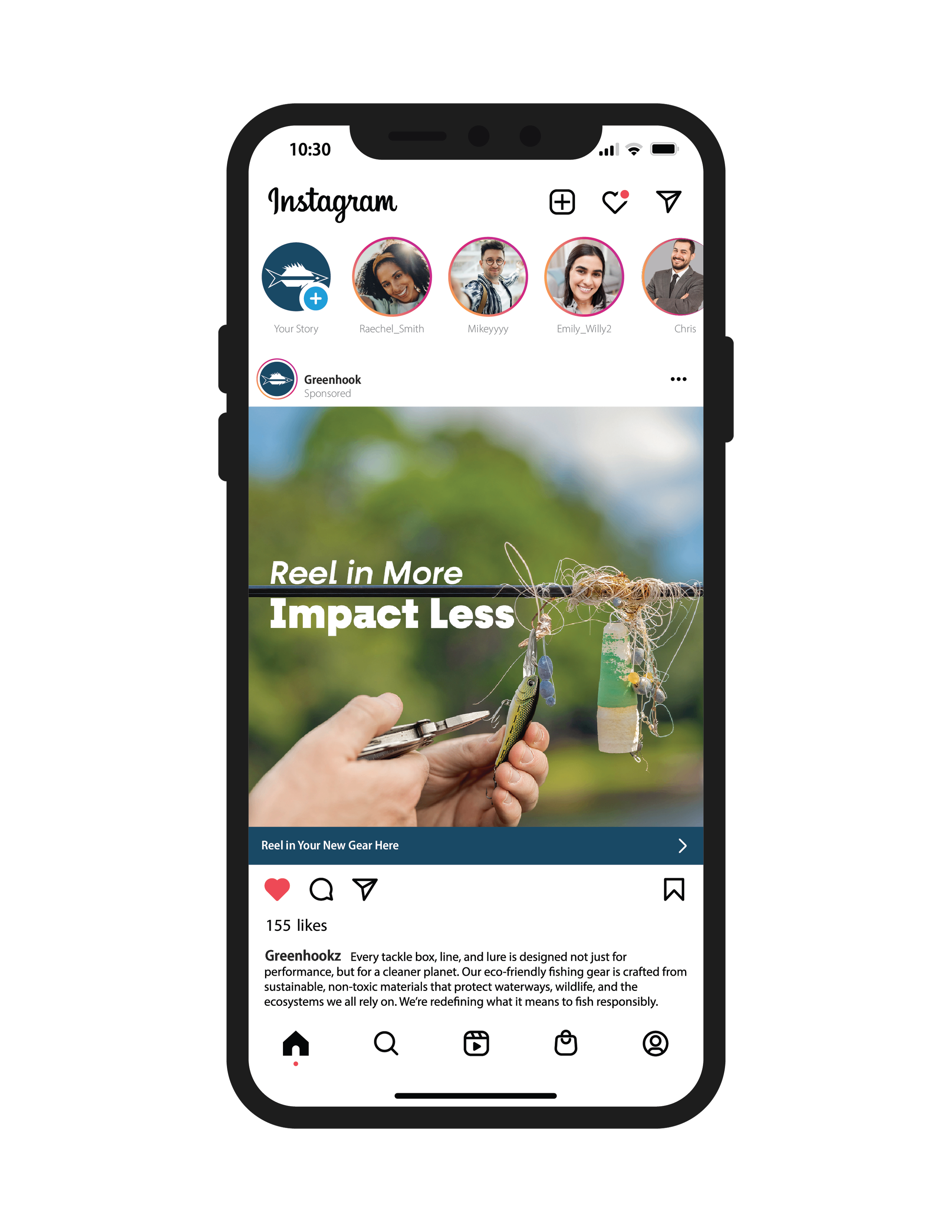 By showing the real impact of abandoned gear and pairing it with the headline “Reel in More, Impact Less,” the message becomes unmistakable. Greenhook gives anglers a way to do what they love while reducing harm to the waters they rely on.